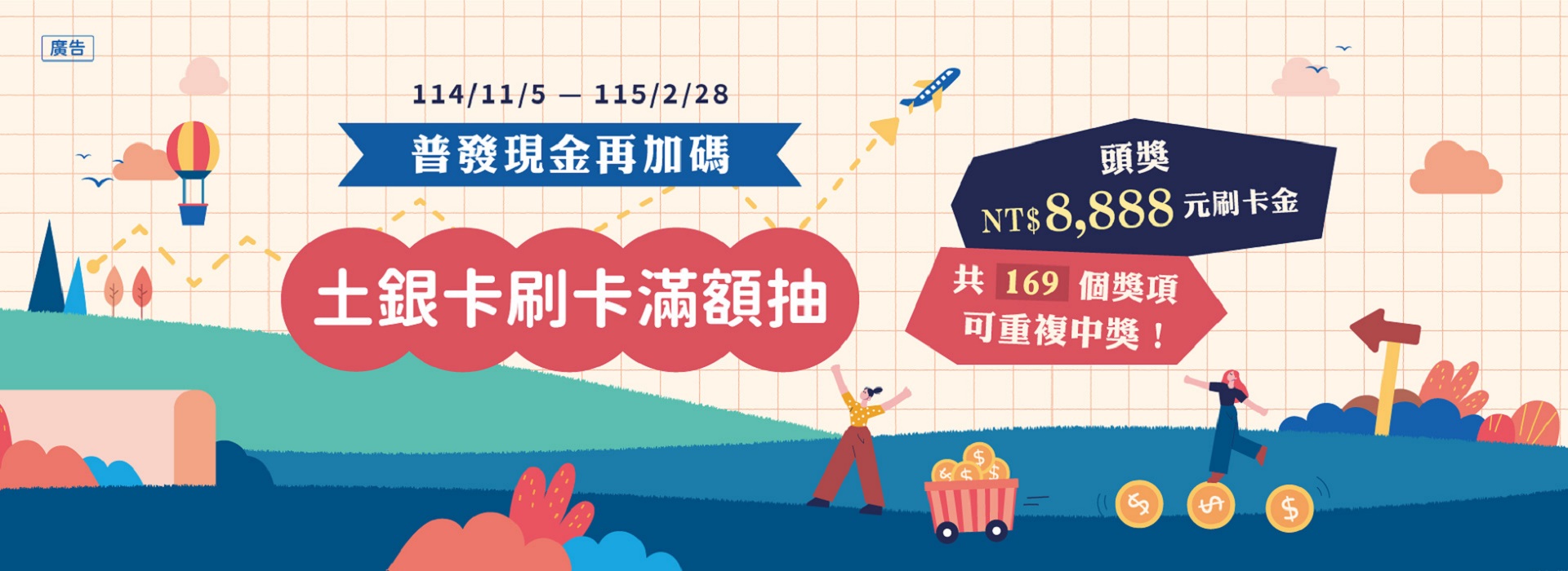 政府四大支持措施 普發現金刷卡滿額抽 土銀購屋族專屬優惠 115年國軍急難貸款 數位存款優惠專案 115年勞保紓困貸款 中小企業匯率避險服務 反詐騙重要通告及澄清 政府四大支持措施 普發現金刷卡滿額抽 土銀購屋族專屬優惠 115年國軍急難貸款 數位存款優惠專案 115年勞保紓困貸款 中小企業匯率避險服務 業務部 反詐騙重要通告及澄清 熱門服務 個人網路銀行 數位存款帳戶線上開戶 理財網 企業金融網 中小企業優利貸專案 了解更多 >